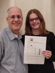 Ich bin unglaublich stolz, dass sie diese Prüfung in ihrem jungen Alter bestanden hat (die Durchfallquote lag bei über 60 %!).